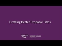 This video discusses the importance of research proposal titles and identifies strategies to improve proposal title clarity. It was created for the Advanced Research Skills Program and included in the module Writing Successful Proposals.