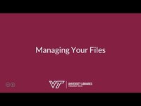 This video reviews the process for managing and organizing your own files and covers strategies/best practices for naming files and utilizing subfolders. It was created for the Advanced Research Skills Program and included in the module Managing & Organizing Data.